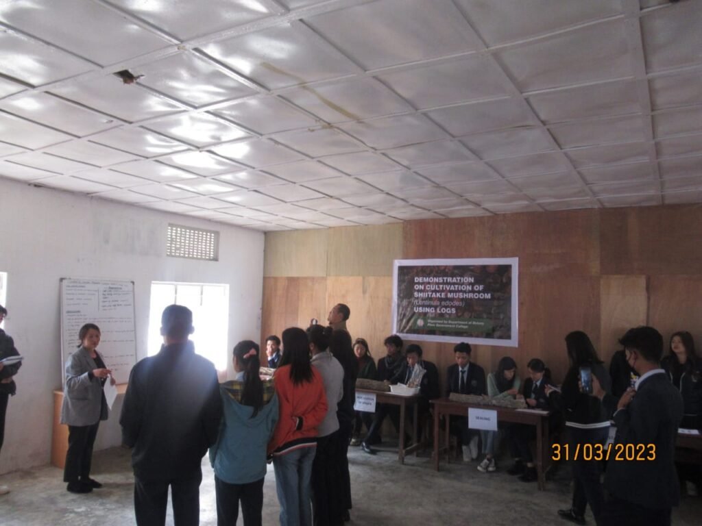 A demonstration on Shitake Mushroom Cultivation was organized by the Botany Department on 31/03/2023 where Dr. Neilhousano and Ms. Shesalu gave a talk on the procedures and steps in Shitake Mushroom cultivation using logs to the students and the faculty.